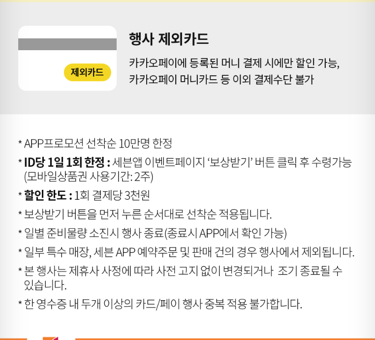 [세븐데이] 행사 상품 11종 카카오페이 머니 결제 시 할인됩니다.2023-07-01 ~ 2023-07-31